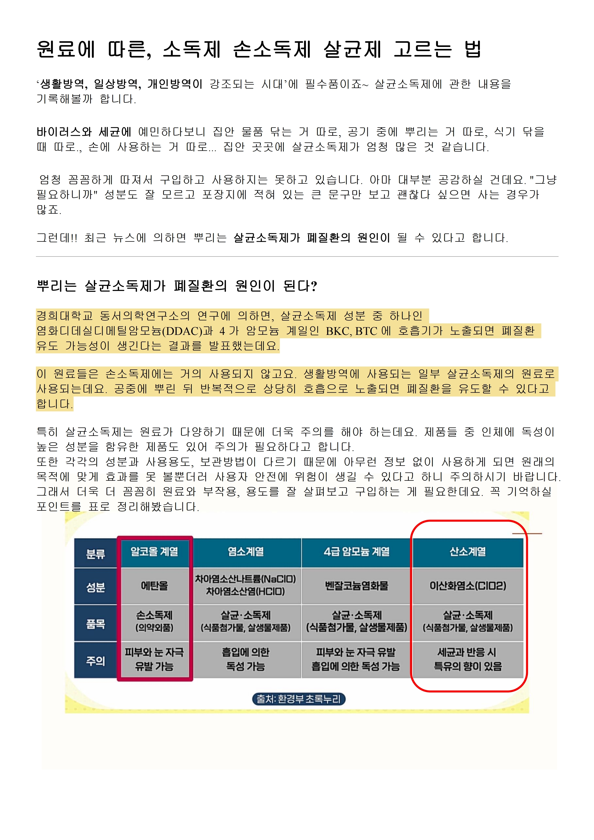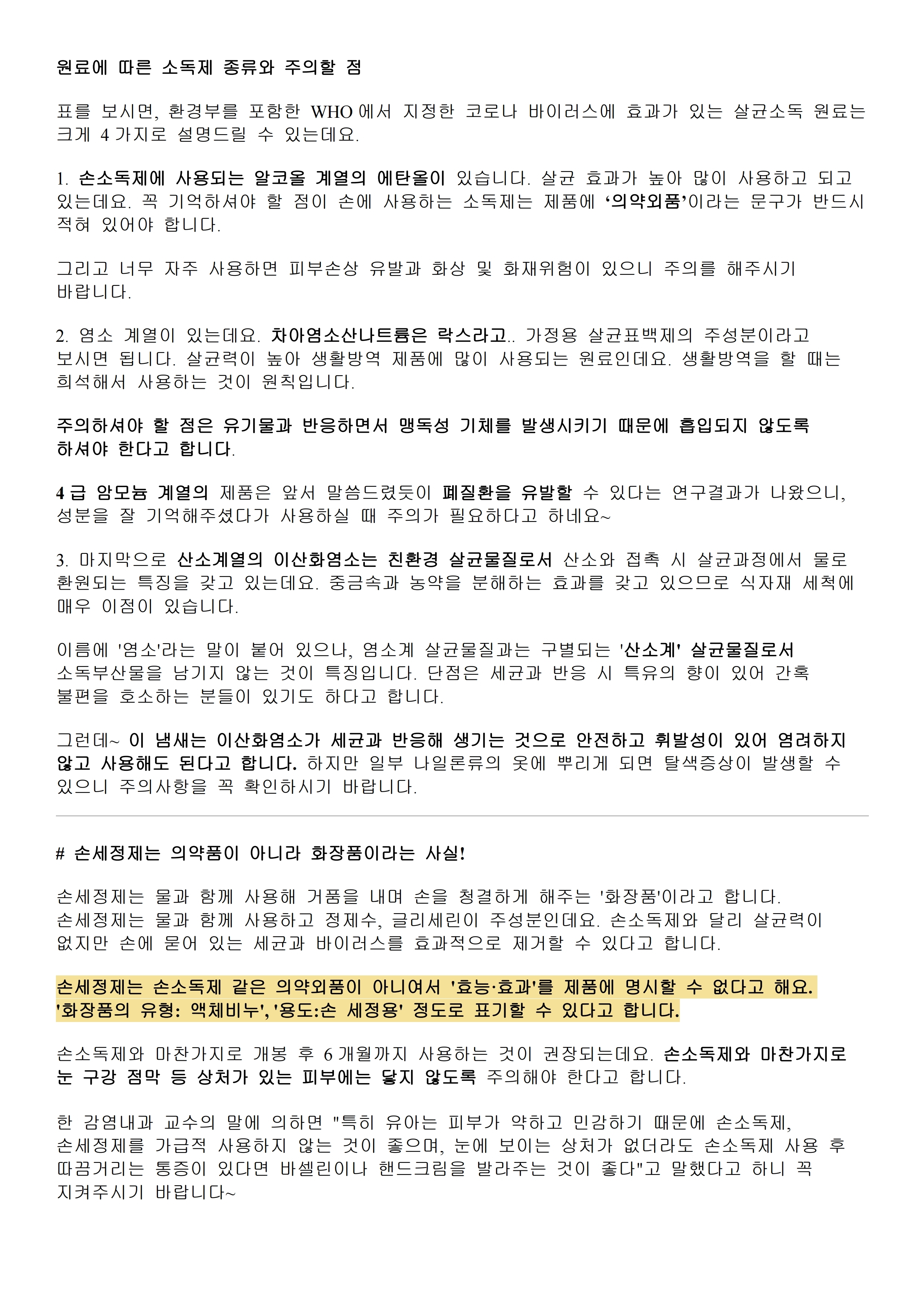 원료에따른 살균제 사용법 및 주의사항