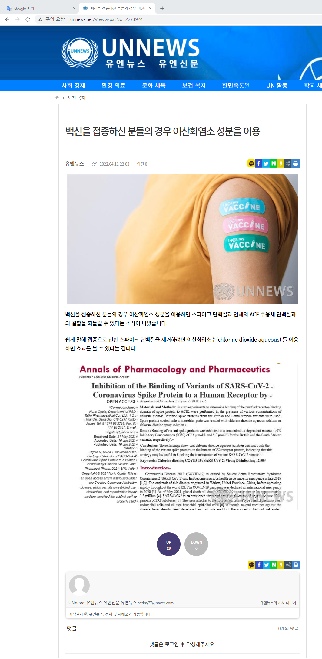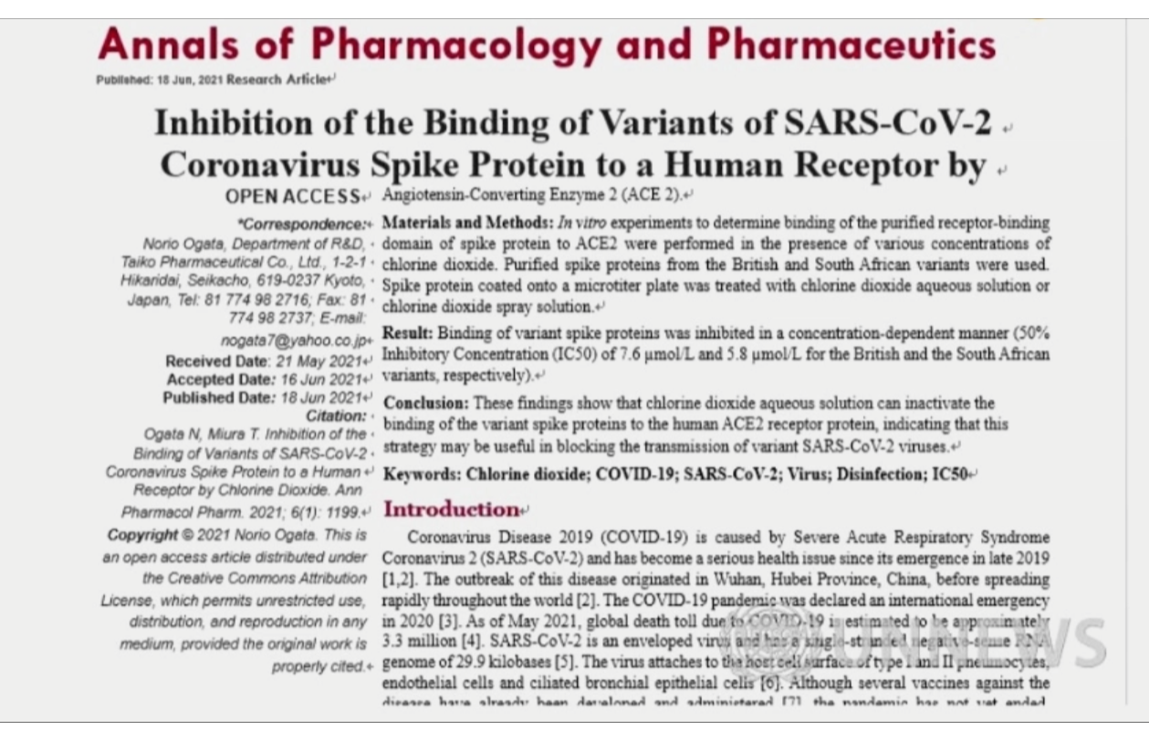이산화염소(ClO2) 스파이크단백질 차단 제거
