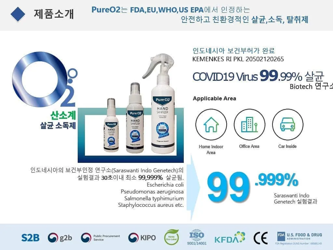 퓨어오투 인도네시아 수출 승인제품