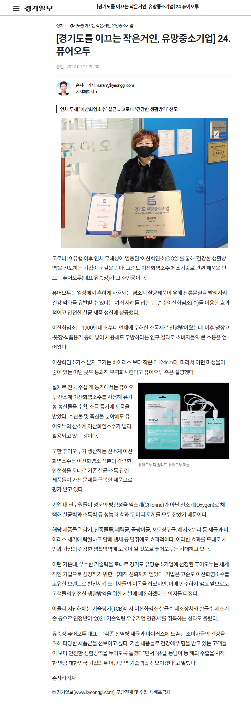 [경기도를 이끄는 작은거인, 유망중소기업] 24.퓨어오투