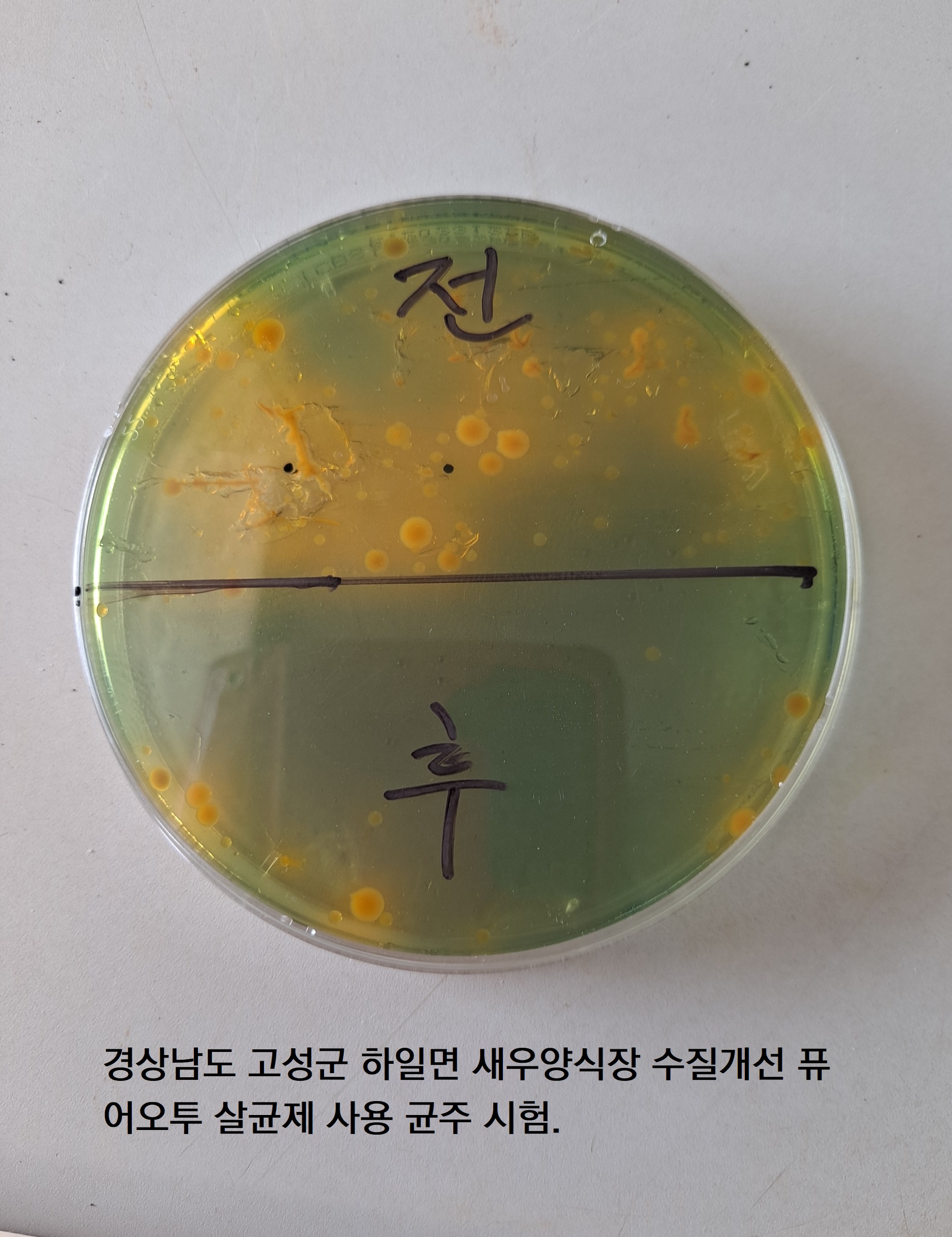 새우양식장 퓨어오투 이산화염소수 살균제 균주 시험.